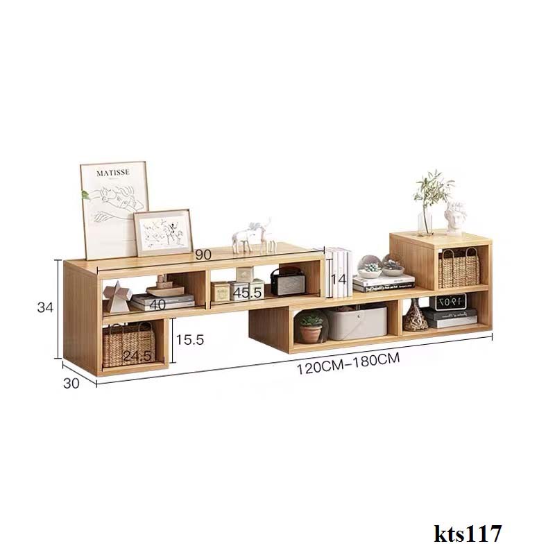 - Kệ dưới cao 34 sâu 30 dài 1m2-1m8, Kệ thiết kế thông minh có thể kéo ra tối đa 1.8m và thu vào 1.2m.